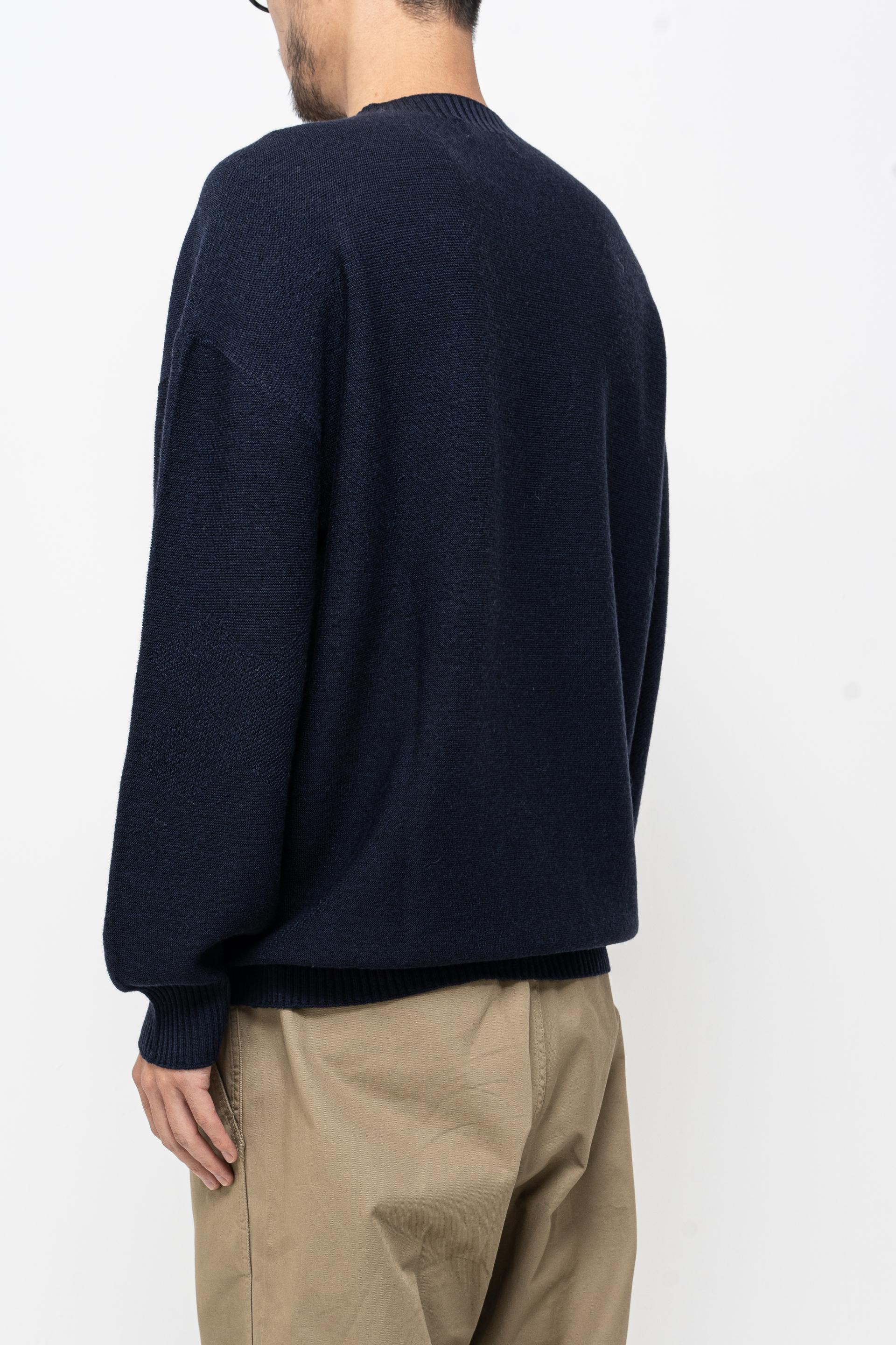 모크넥과 크루넥의 중간쯤의 높이로, 편안한 착용감과 여유있는 실루엣을 느낄 수 있는 제품입니다.