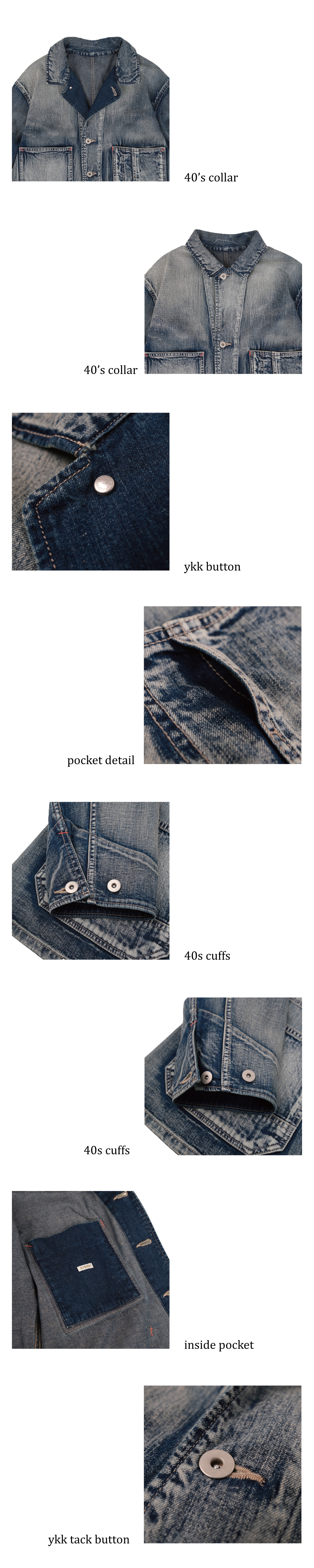 40's Vintage Coverall Jacket_Bleach Indigo