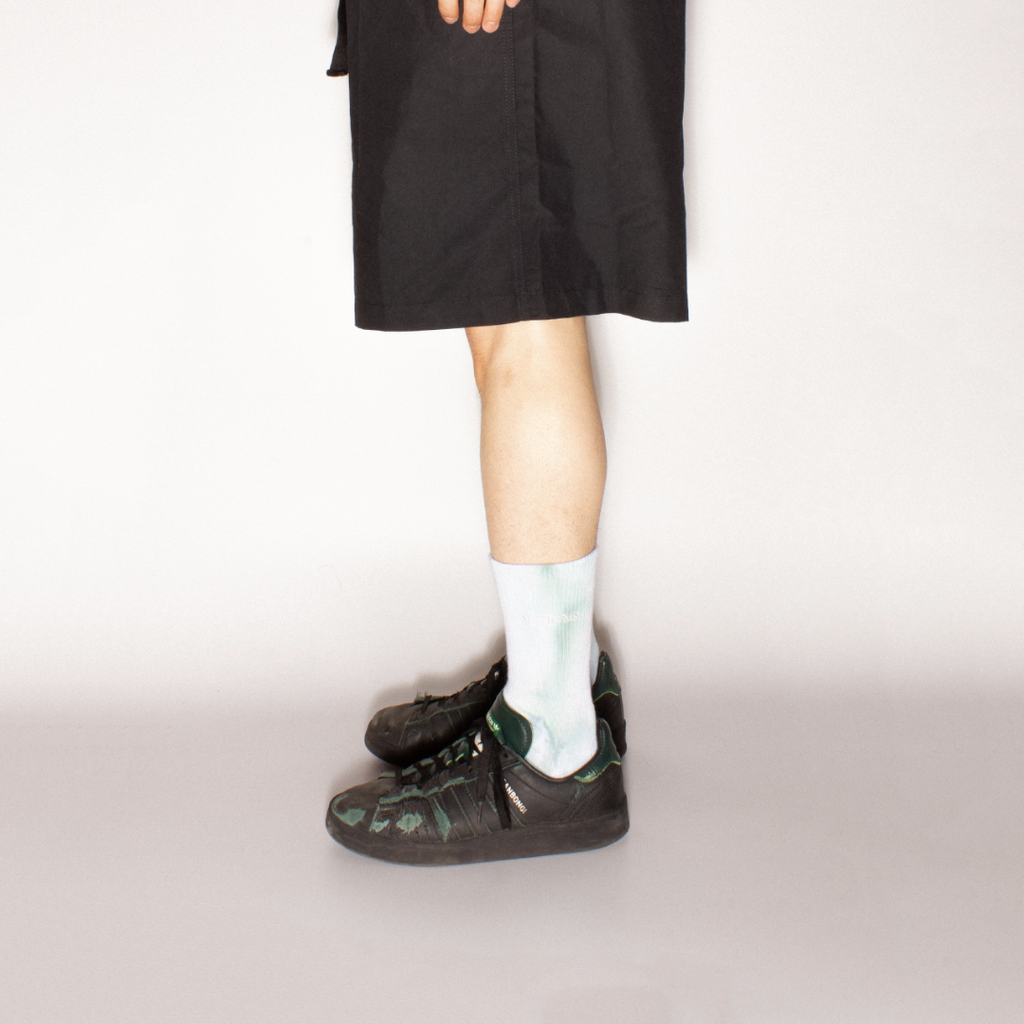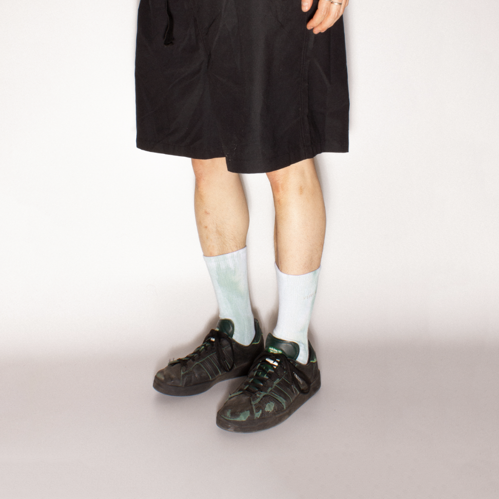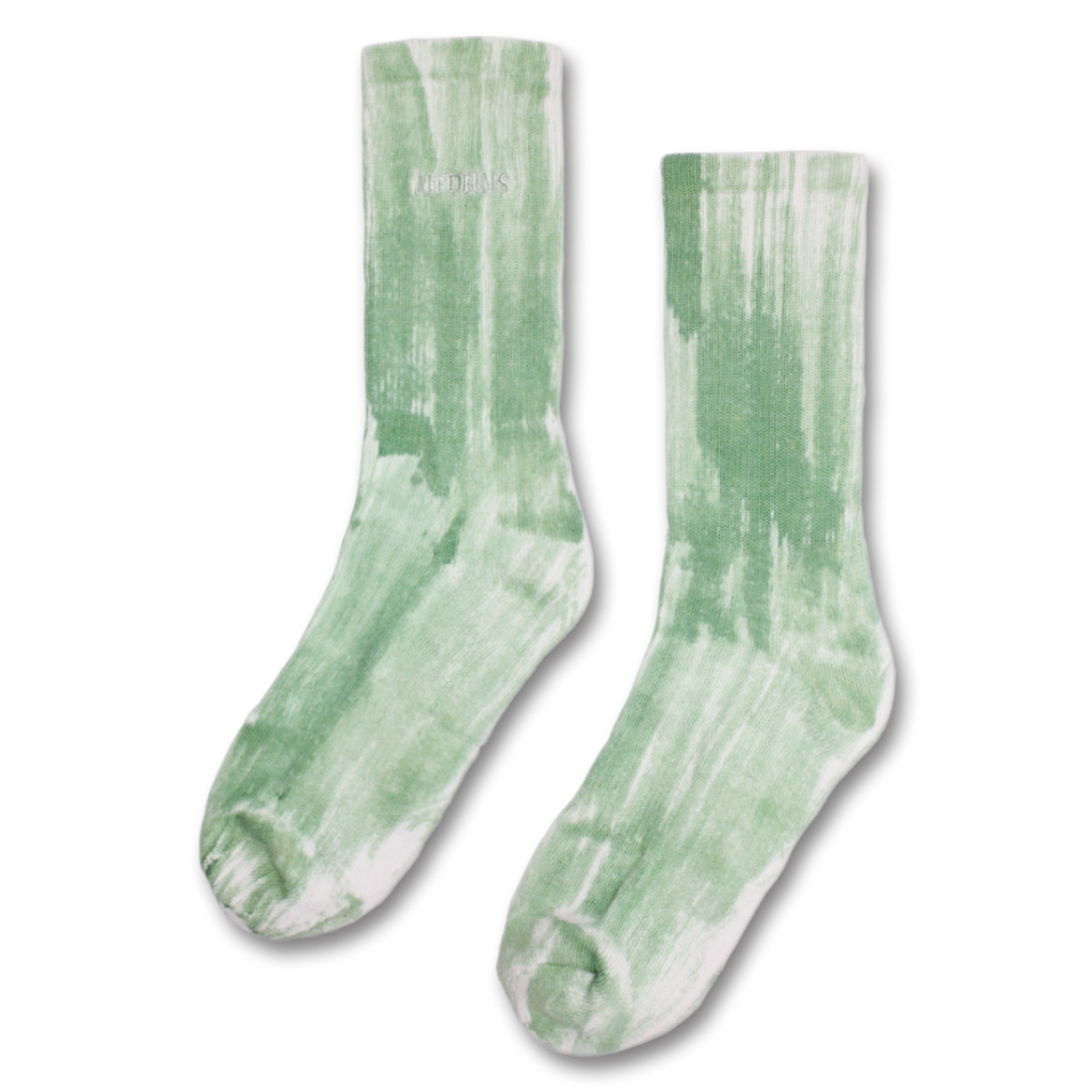 페인트 브러쉬 스트로크로 다잉 작업을 한 브러쉬 다이 양말 (Brush Dyed Socks)입니다. 수작업 특성상 각 아이템마다 고유의 패턴을 갖고 있어 개체 차이가 있습니다.